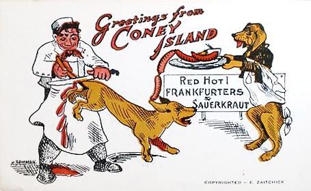 Germany had a history of dog meat consumption. Currently, it is illegal to consume dog or cat meat in Germany currently.[2] However as Germans used to consume dog meats, many Americans had a superstition that the Germans had dog meat in sausages as well.