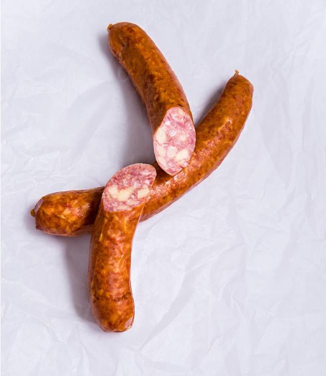 정통 카제크레이너는 사과나무로만 훈연을 하여 카제크레이너만의 독특한 사과나무 훈연향과 녹은 치즈 덩어리 맛이 일품인 오스트리아의 소시지이다.