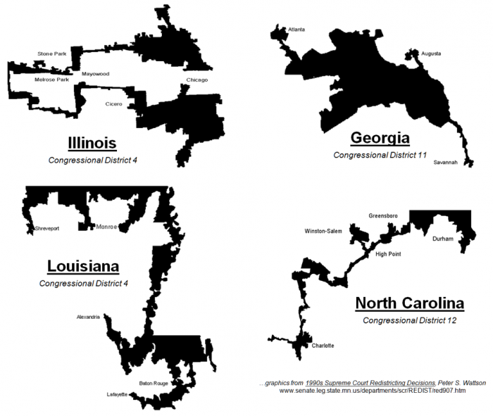 Named after Elbridge Gerry, the term ‘Gerrymandering’ became a term that is defined as “the practice of drawing the boundaries of electoral districts in a way that gives one political party an unfair advantage over its rivals (political or partisan gerrymandering) or that dutes the voting power of members of ethnic or linguistic minority groups (racial gerrymandering).”[1]