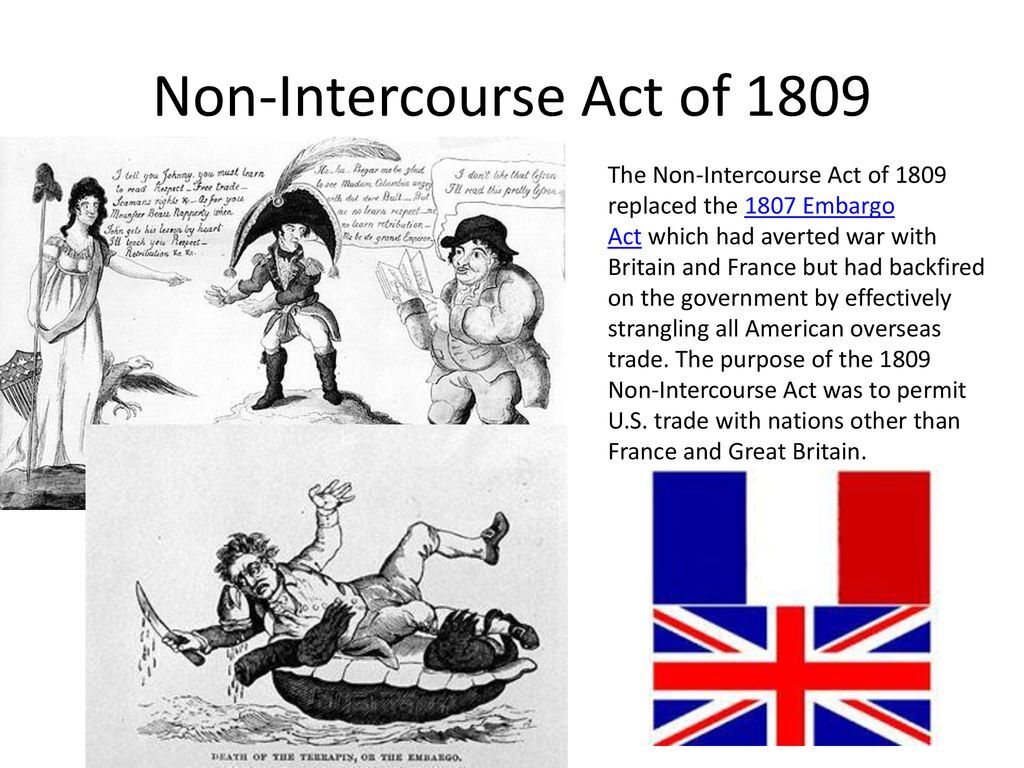 Embargo Act caused an economic crisis which didn’t impact the European countries much. Upon Thomas Jefferson’s last and the initial actions of James Madison, the Non-Intercourse Act of 1809 was passed which enabled trades with Europe except for Great Britain and France.