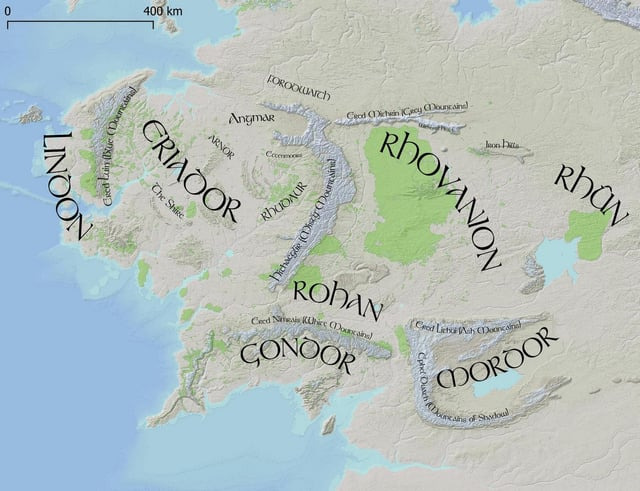 에리아도르는 안개산맥 서쪽의 대부분을 일컫는 일대로 린돈, 아르노르, 리븐델, 샤이어, 회색 항구와 청색산맥 등의 영토를 모두 포함한다.