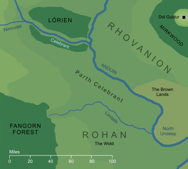 반지원정대는 동쪽으로 향하기 이전 로슬로리엔에서 갈라드리엘에게 선물을 받으며 배를 빌려 안두인 강을 따라 아나리온과 이실두르의 석상인 아르고나스가 위치한 곤도르의 국경을 통과하고 에뮌 무일에서 하선한다.